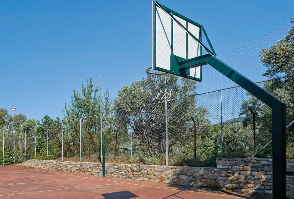 Through the shady olive grove, the guest can reach Sikia beach, situated in front of the camping. Sikia offers a sandy beach for both children and adults. There is also a rocky bay for snorkling and swimming. As part of the offered facilities is the family taverna, the seaside bar and a grocer’s shop. Among others there is also a multi-purpose sports field for basketball, mini football and volleyball.